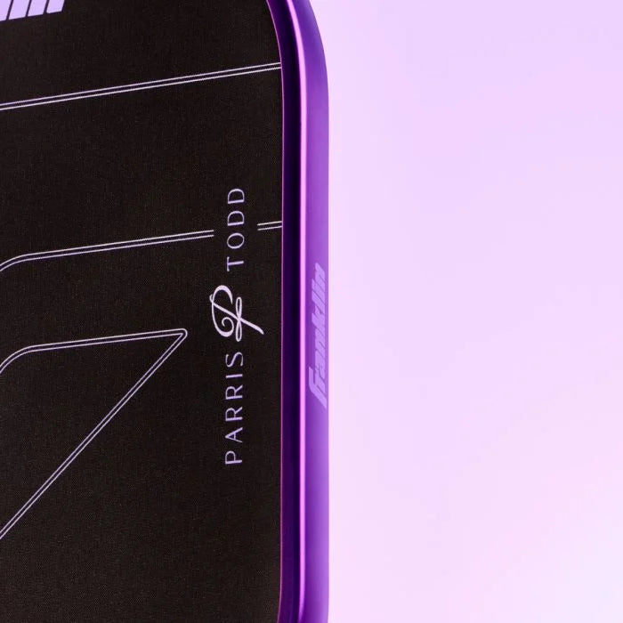 Franklin Sports continues to raise the bar in pickleball while working directly with pros. They worked hand in hand with Parris Todd to curate her own signature C45° paddle. With a 13.25mm thick PowerFlex polymer core, this pro-design paddle features an elongated 5.7" inch handle with 4.15" inch handle circumference (weight range 7.6 - 7.9oz). The Parris Todd C45° is an elongated pickleball paddle that offers a multitude of different technologies, giving players a combination of supreme control and full power on the court. The C45° is constructed with a double-thermoformed unibody frame. This process is exceptional because it helps to fully enhance the structural integrity of the paddle while reducing vibration to a degree that sets it apart from competitor paddles. Each paddle is constructed with a large inner foam channel that allows the C45° to stay structurally sound while also keeping the polymer core intact to preserve long-lasting premium performance! Players will feel the incredible pop coming from the paddle but also feel fully in control. The carbon fiber surface layer is applied as a 45 degree peel ply texture which provides a superior amount of grit and spin right off the surface, giving players an incredible amount of power and speed right off the paddle. This process maximizes grip and unlocks spin potential so players can control the additional core power without sacrificing precision. The C45° pickleball paddle has been approved by both USA Pickleball and the United Pickleball Association for competitive play. They've taken their paddle engineering to new heights, and the results speak for themselves. If you’re ready to enhance your game, be sure to grab the Parris Todd C45° today and we'll see you on the court!